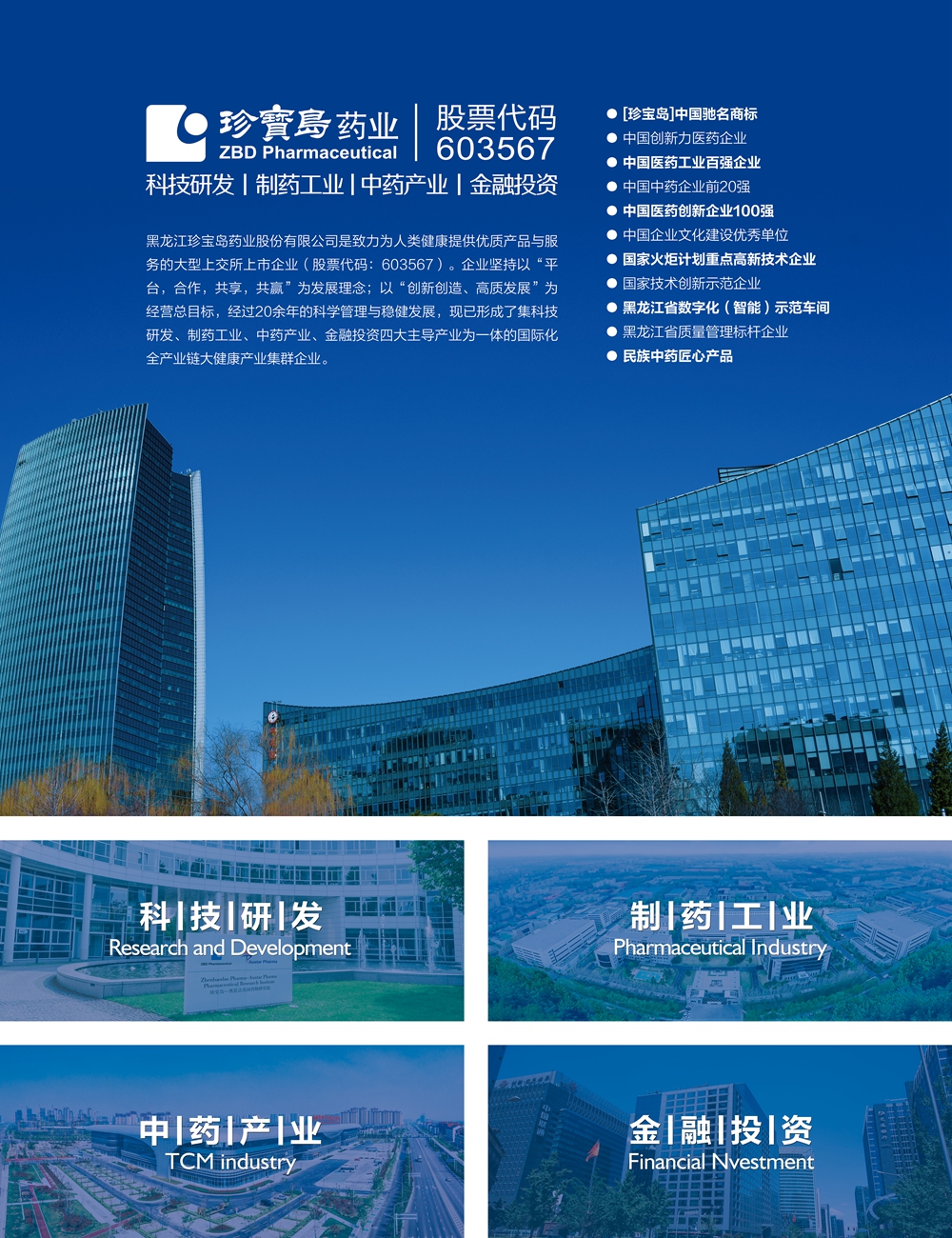 黑龍江珍寶島藥業(yè)股份有限公司(603567.SH)創(chuàng)立于1996年。公司以“為世界提供優(yōu)質(zhì)健康產(chǎn)品與服務(wù)”為企業(yè)使命,以“平臺 合作 共享 共贏”為發(fā)展理念,堅持“一心三園四平臺”發(fā)展戰(zhàn)略,以“六位一體”運營模式推動企業(yè)經(jīng)營轉(zhuǎn)型。打造醫(yī)藥行業(yè)新質(zhì)生產(chǎn)力的重要平臺,加快科技研發(fā)成果轉(zhuǎn)化與應(yīng)用,積極參與國家醫(yī)藥產(chǎn)業(yè)項目建設(shè)。珍寶島藥業(yè)長期穩(wěn)居中國醫(yī)藥工業(yè)百強、中國中藥企業(yè)前二十強行列。業(yè)務(wù)領(lǐng)域涉及科技研發(fā)、制藥工業(yè)、中藥產(chǎn)業(yè)、金融投資四大板塊。