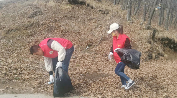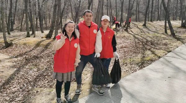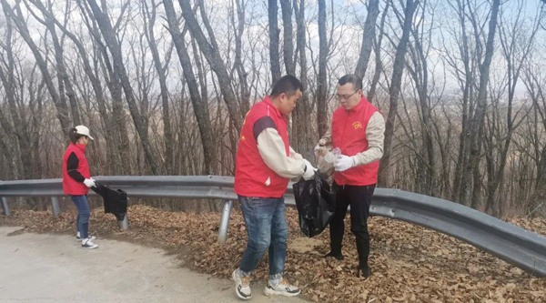 大家自備手套、水靴、剪刀、袋子、皮繩等清掃工具,從石青山的山腳下開始,對環(huán)山路兩側(cè)的垃圾進(jìn)行全面清理、裝運。有的鉆入樹林,撿拾白色垃圾;有的摘除破損條幅,更換新貌;有的收堆、撐袋,將垃圾裝車運走。醒目的條幅標(biāo)語,飄揚(yáng)的志愿服務(wù)隊隊旗,鮮紅的志愿者身影,忙碌的勞動場面,構(gòu)成了一幅五彩斑斕的畫卷。